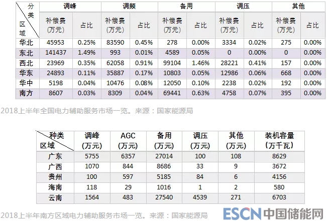 2018上半年南方區(qū)域電力輔助服務市場一覽。來源:國家能源局