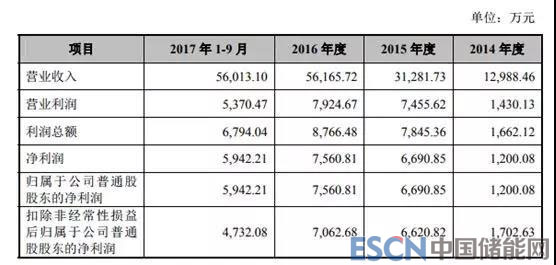 根據(jù)德方納米2017年12月20日更新的招股說(shuō)明書顯示,公司2014年、2015年、2016年、2017年1-9月營(yíng)業(yè)收入分別為1.3億元、3.13億元、5.62億元、5.6億元;凈利潤(rùn)分別為1200萬(wàn)元、6690.9萬(wàn)元、7560.8萬(wàn)元、5942.2萬(wàn)元。