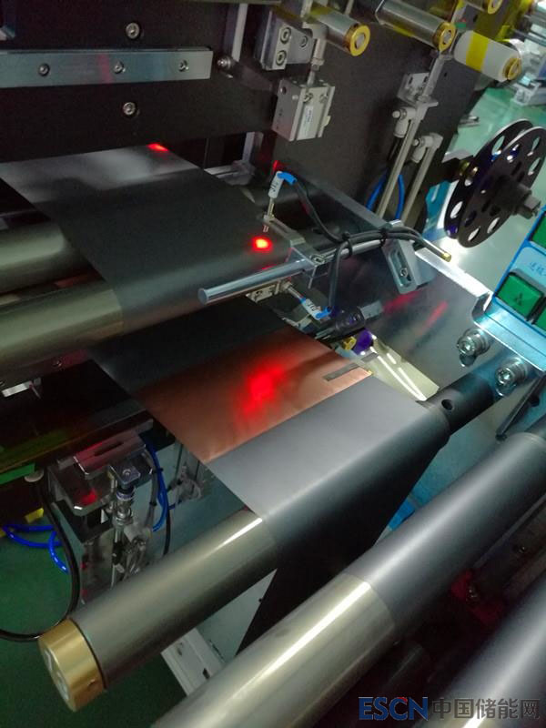1.1 設(shè)備原理:電池制片機(jī)是用于生產(chǎn)正極極片或負(fù)極極片的設(shè)備, 用于生產(chǎn)鋰電池正極極片(鋁質(zhì))或負(fù)極極片(銅質(zhì))。一種極性需要一臺(tái)設(shè)備,一般是正負(fù)極兩臺(tái)設(shè)備在不同車(chē)間同時(shí)加工。將極片、極耳料卷分別安裝在放卷軸上,實(shí)現(xiàn)自動(dòng)放卷、自動(dòng)糾偏、自動(dòng)焊接極耳、自動(dòng)貼膠、極耳包膠,切斷或收卷的功能。