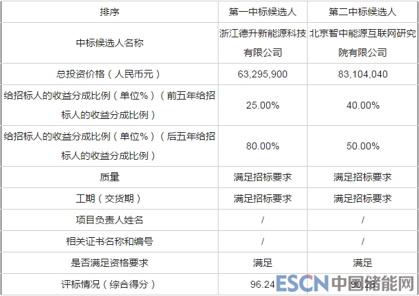 中國儲能網(wǎng)訊:廣東汕尾電廠3、4號機組儲能調(diào)頻項目中標(biāo)候選人公示,第一候選人為浙江德升新能源科技有限公司,中標(biāo)投資價格為6329.59萬元,依據(jù)公開的投資收益分成比例,前五年將給招標(biāo)人25%,后五年給招標(biāo)人80%。