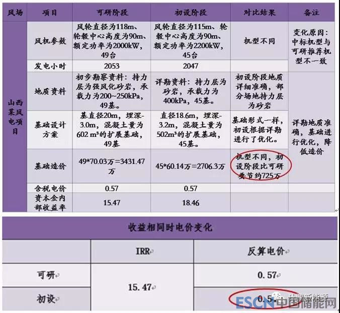 該項目為IV類資源區(qū)的山西省,可研、初設階段,所選機型發(fā)生變化,且因兩階段,該企業(yè)對地質勘查工作技術要求程度不同,造成不同階段掌握到的地質情況準確程度有一定差異,對技術方案及工程造價影響不容小覷。
