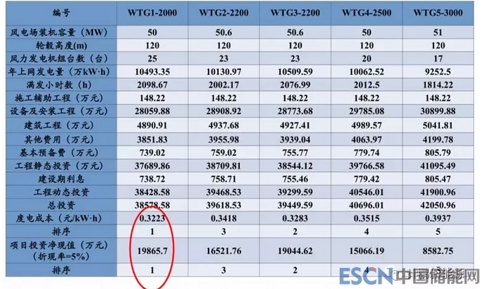 可得出:推薦經濟效益最好、單機容量為2000kW的WTG1風力發(fā)電機組。