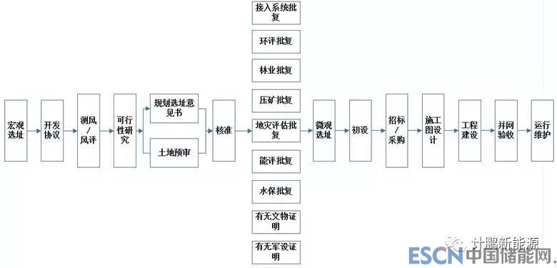 傳統(tǒng)集中式風電場開發(fā)建設流程如下: