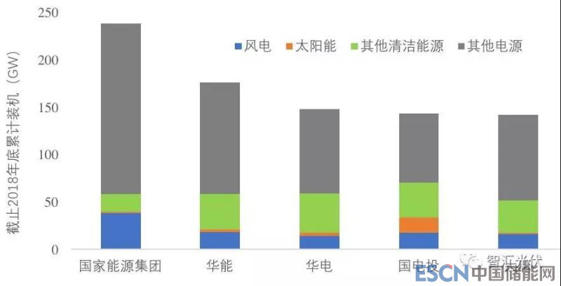 截止目前,國電投是國內(nèi)光伏投資最大的企業(yè),高達(dá)15.9GW;風(fēng)電投資也有17.4GW。風(fēng)光總裝機(jī)是五大中占比最高的一個,如下圖所示。