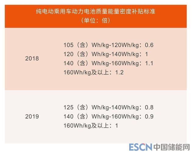 補(bǔ)貼金額“縮水”的同時(shí),電池組的能量密度要求也有所調(diào)整。動(dòng)力電池系統(tǒng)的質(zhì)量能量密度最低從2018年要求的105Wh/kg調(diào)整至125Wh/kg。補(bǔ)貼系數(shù)的分檔也更細(xì),125(含)-140Wh/kg的車(chē)型按0.8倍補(bǔ)貼,140(含)-160Wh/kg的車(chē)型按0.9倍補(bǔ)貼,160Wh/kg及以上的車(chē)型按1倍補(bǔ)貼,鼓勵(lì)動(dòng)力電池向高能量密度發(fā)展。
