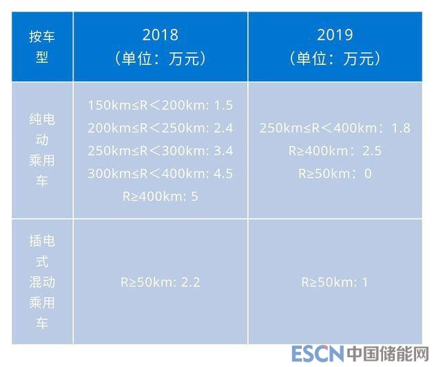 而續(xù)航里程大于等于400km的純電動(dòng)乘用車(chē),2018年可享受補(bǔ)貼5萬(wàn)元,2019年補(bǔ)貼新政調(diào)整為2.5萬(wàn)元,補(bǔ)貼退坡50%。
