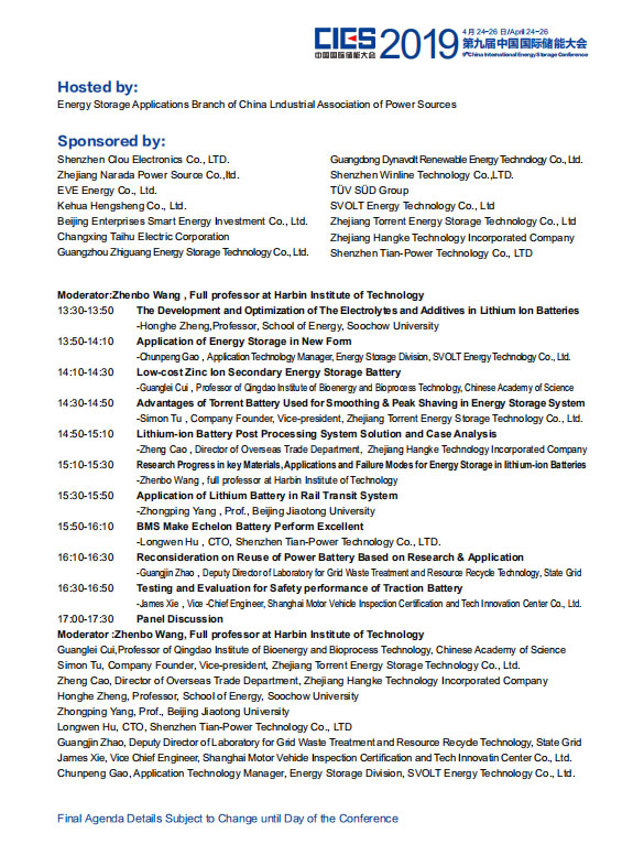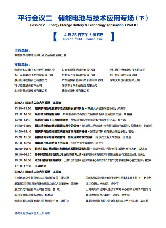 以下是《儲能電池與技術(shù)應用專場(下)》議程內(nèi)容,其他各專場議程組委會將相繼發(fā)布,敬請關注!
