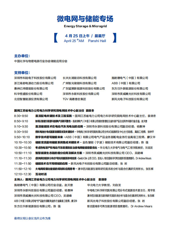 以下是《微電網(wǎng)與儲(chǔ)能專場(chǎng)》議程內(nèi)容,其他各專場(chǎng)議程組委會(huì)將相繼發(fā)布,敬請(qǐng)關(guān)注!