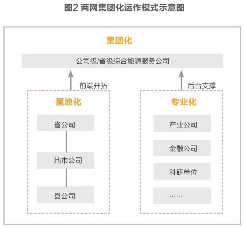 集團(tuán)化、屬地化、專業(yè)化成為兩網(wǎng)拓展綜合能源服務(wù)市場(chǎng)的“三化”原則。省市縣公司具有屬地化優(yōu)勢(shì),可以充分利用好大客戶經(jīng)理直接接觸用戶機(jī)會(huì),掌握第一手的客戶需求信息,有效拓展?fàn)I銷渠道。產(chǎn)業(yè)單位、金融單位、科研單位和集體企業(yè)等則延續(xù)專業(yè)化發(fā)展道路。通過(guò)專業(yè)化和屬地化的有效協(xié)同,可加強(qiáng)各單位間的優(yōu)勢(shì)互補(bǔ)和資源統(tǒng)籌,從而實(shí)現(xiàn)集團(tuán)整體業(yè)務(wù)的良性運(yùn)作和有序發(fā)展,實(shí)現(xiàn)集團(tuán)利益的最大化。