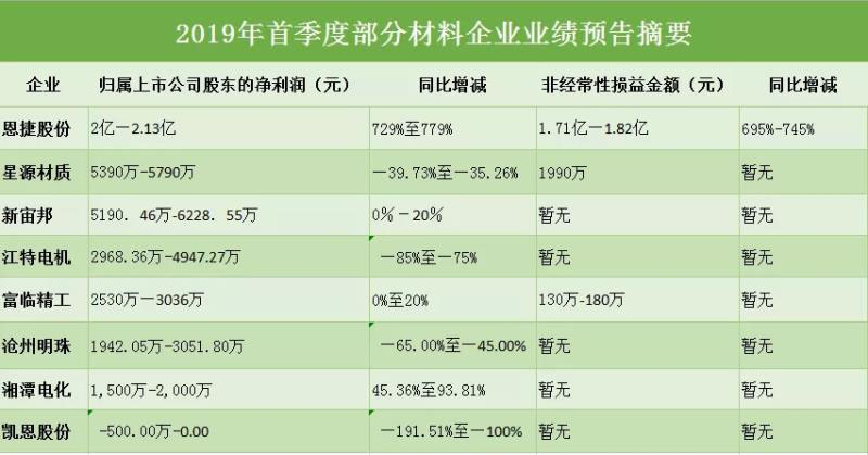 圖為2019年首季度部分材料企業(yè)業(yè)績預(yù)告摘要