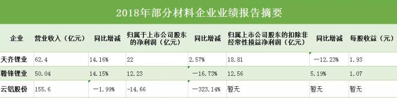 圖為2018年部分材料企業(yè)業(yè)績報告摘要