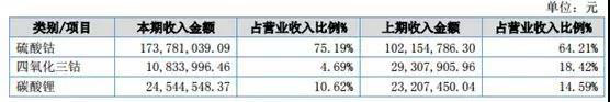 年報顯示,硫酸鈷、四氧化三鈷和碳酸鋰是金源新材的主營產(chǎn)品。其中,報告期內(nèi)硫酸鈷銷量同比增加478.45噸,收入增加4433.26萬元;硫酸鈷平均銷價同比增加1.95萬元/噸,收入增加2729.36萬元。