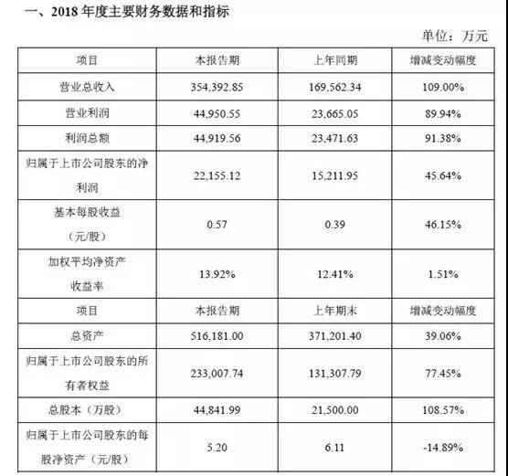 道氏技術(shù)的2018年度業(yè)績報(bào)表顯示,道氏技術(shù)2018年實(shí)現(xiàn)營業(yè)收入35.44億元,同比增長109.00%;實(shí)現(xiàn)歸屬于上市公司股東的凈利22.15億元,同比增長45.64%;歸屬于上市公司股東的所有者權(quán)益為23.30億元,同比增長77.45%。