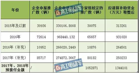 高工電動(dòng)車(chē)(微信號(hào):weixin-gg-ev)對(duì)清算文件整理發(fā)現(xiàn),終審和預(yù)撥付的補(bǔ)貼總金額高達(dá)310億元,其中186.8億元為2015年及以前、2016年、2017年的終審清算補(bǔ)貼,還有134.4億元為2017年、2018年的新能源汽車(chē)預(yù)撥款。