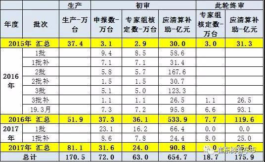 從2015年到2017年共生產(chǎn)170萬臺新能源車,目前統(tǒng)一到的申報數(shù)量達(dá)到72萬臺,專家組審定數(shù)量達(dá)到63萬臺,補(bǔ)貼金額,申報數(shù)量達(dá)到654億元。