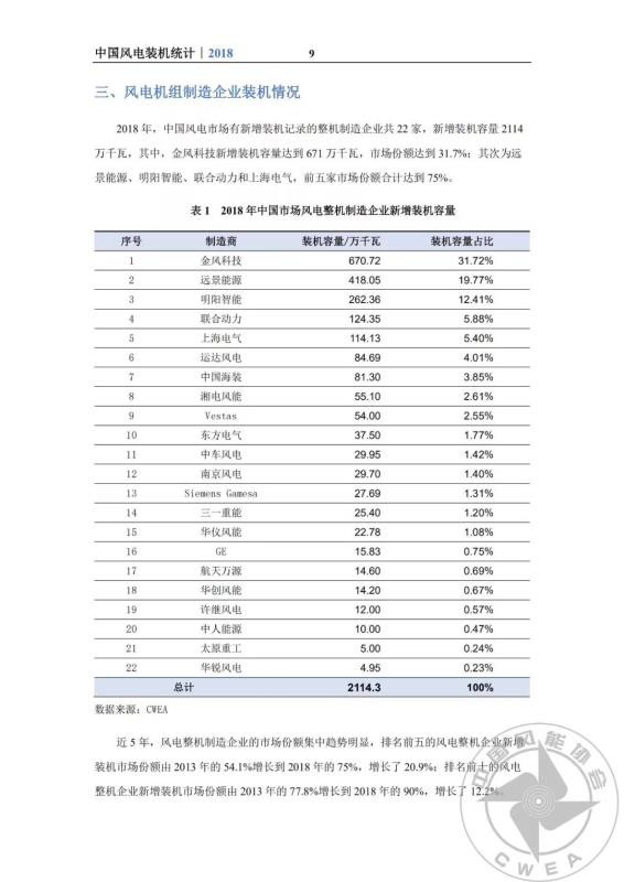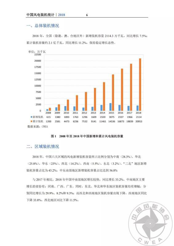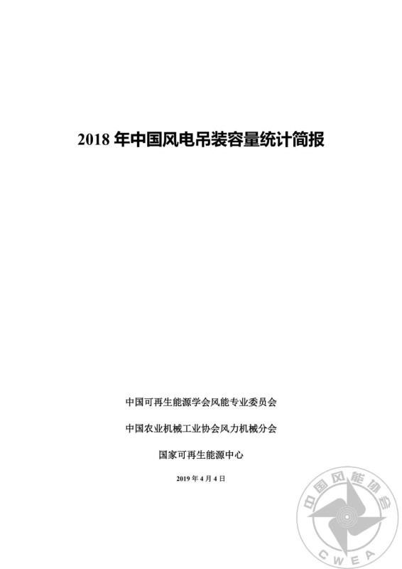 2018年中國風(fēng)電吊裝容量統(tǒng)計簡報正式發(fā)布
