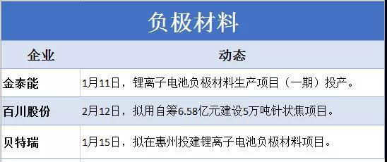 圖為2019年首季度國內(nèi)主要材料企業(yè)在負極材料方向的市場動態(tài)