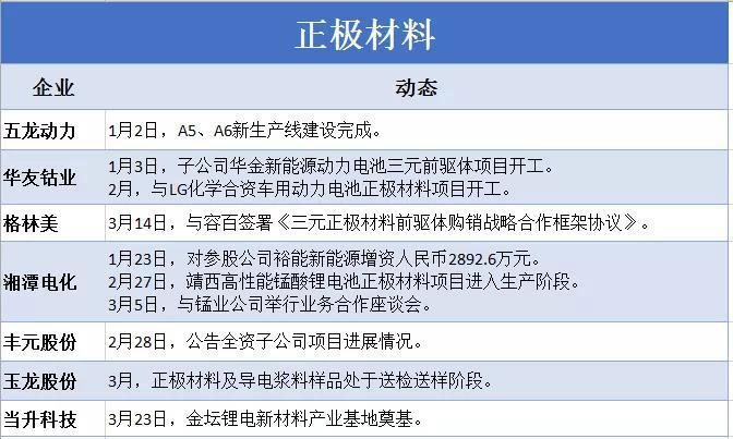 圖為2019年首季度國內(nèi)主要材料企業(yè)在正極材料方向的市場動態(tài)