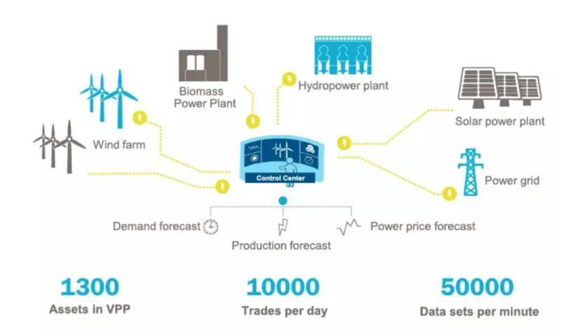 中國(guó)儲(chǔ)能網(wǎng)訊:在德國(guó),Statkraft公司與Energy Meteo Systems合作,創(chuàng)立了整合可再生能源發(fā)電廠構(gòu)成虛擬發(fā)電廠(a virtual power plant ,簡(jiǎn)稱VPP)。該虛擬電廠包括虛擬發(fā)電廠的系統(tǒng)中有1300多個(gè)風(fēng)電場(chǎng),還有100個(gè)太陽(yáng)能、水力發(fā)電和生物能源生產(chǎn)商,總?cè)萘砍^(guò)10,000兆瓦,與10個(gè)核反應(yīng)堆大致相同,是德國(guó)最大的發(fā)電廠Neurath煤電廠的兩倍多。虛擬發(fā)電廠連接這些小型電力生產(chǎn)商出售可再生能源,并利用可再生能源工廠的全部靈活性,如同一家大型可靠的發(fā)電廠一樣。專家構(gòu)建智能算法,自動(dòng)銷售能源市場(chǎng)中可再生能源發(fā)電廠的生產(chǎn),以最大限度地降低客戶風(fēng)險(xiǎn),并通過(guò)利用虛擬電廠的靈活性獲得最大化的財(cái)務(wù)回報(bào)。虛擬電廠與氣象機(jī)構(gòu)合作,通過(guò)數(shù)字平臺(tái)每分鐘處理和分析超過(guò)5萬(wàn)個(gè)相關(guān)數(shù)據(jù),可以有效應(yīng)對(duì)可再生能源發(fā)電的間歇性問(wèn)題。虛擬電廠可以遠(yuǎn)程控制電網(wǎng)中的每個(gè)獨(dú)立電力生產(chǎn)商,每天超過(guò)10,000次交易。例如,如果市場(chǎng)價(jià)格突然下降或電網(wǎng)限制,我們可以降低發(fā)電廠的產(chǎn)出。這使工廠能夠?qū)崟r(shí)平衡電力生產(chǎn)。目前,這項(xiàng)創(chuàng)新已經(jīng)開始推廣,已經(jīng)有超過(guò)50種VPP解決方案。