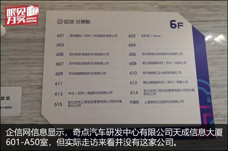 汽車之家走訪了兩處的注冊(cè)地址,其中,注冊(cè)在天成信息大廈的奇點(diǎn)汽車研發(fā)中心有限公司,并沒(méi)有相應(yīng)的辦公室。大廈管理人員稱,該座大廈還沒(méi)有汽車企業(yè)注冊(cè),據(jù)她所知,相城區(qū)還沒(méi)有引進(jìn)汽車及相關(guān)零部件的企業(yè)。而按照另一個(gè)公司的注冊(cè)地,我們則找到了一間空蕩蕩的辦公室,但是沒(méi)有奇點(diǎn)汽車的任何相關(guān)標(biāo)識(shí),其所在樓層的導(dǎo)航板上也沒(méi)有顯示奇點(diǎn)汽車的名字。此外,我們還查閱了蘇州相城區(qū)政府官網(wǎng)展示的引入項(xiàng)目,奇點(diǎn)汽車也并不在列。