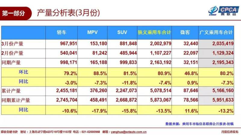 數(shù)據(jù)顯示,2019年3月,狹義乘用車生產(chǎn)200.3萬(wàn)臺(tái),同比下降7.4%;廠家批發(fā)191.7萬(wàn)臺(tái),同比下降9.7%;廠家?guī)齑嬖黾?.6萬(wàn)臺(tái),渠道庫(kù)存增長(zhǎng)15.7萬(wàn)臺(tái)。