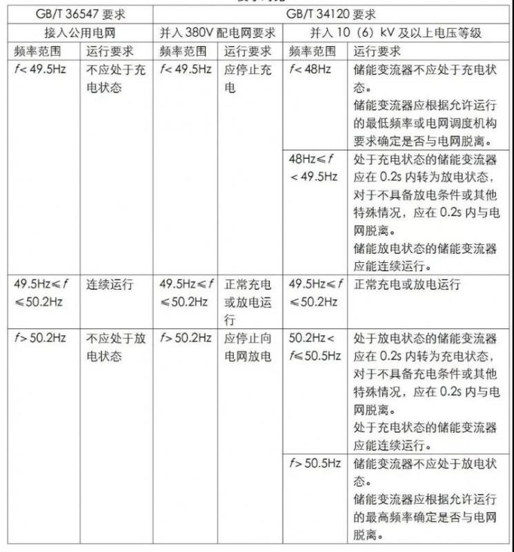 下面將GB/T34120中頻率響應(yīng)(條款5.4.11.1)的要求與GB/T 36547中頻率適應(yīng)性的要求進(jìn)行比較: