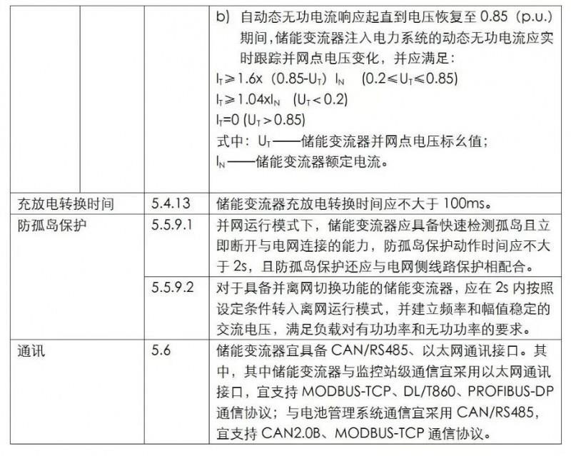 GB/T34120條款5.4.12.1對儲(chǔ)能變流器接入公用電力系統(tǒng)條件下電力系統(tǒng)發(fā)生故障時(shí)的低電壓穿越能力提出了要求,并在條款5.4.12.2中對于低電壓穿越過程中儲(chǔ)能變流器的動(dòng)態(tài)無功支撐能力提出了要求。