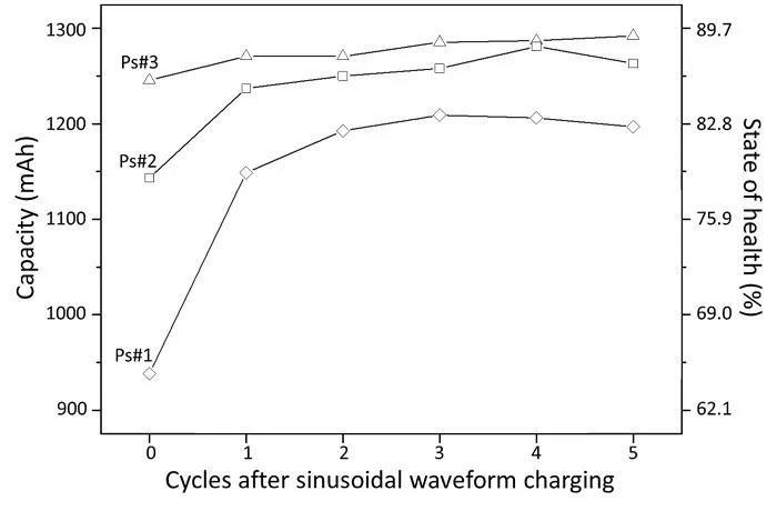 另外,對于從電動車上淘汰下來的電池以弦波充電法充電,也能夠提升最多18.7%的電容量。弦波充電于充電過程中,電池溫度上升最多9 °C,且充電時間僅需傳統(tǒng)CC-CV充電法時間的一半,其表現(xiàn)皆優(yōu)于傳統(tǒng)CC-CV充電法。