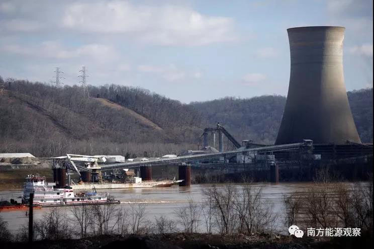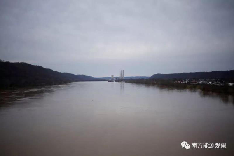 在俄亥俄州亞當(dāng)斯縣,從俄亥俄河順流而下的駁船不再向這里的兩座已經(jīng)屹立了幾十年的發(fā)電廠輸送煤炭。這兩座燃煤電廠就像兩個哨崗一樣,若隱若現(xiàn)。