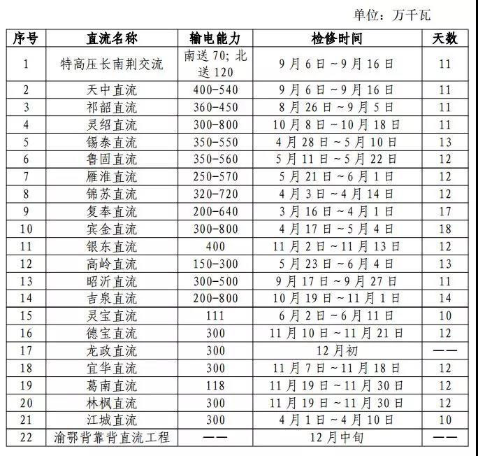 2019 年主要輸電通道輸電能力及停電檢修計(jì)劃安排
