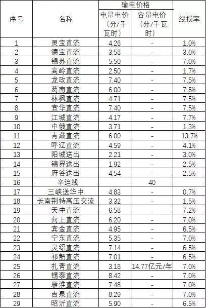 一、跨省跨區(qū)專項(xiàng)工程輸電價(jià)格