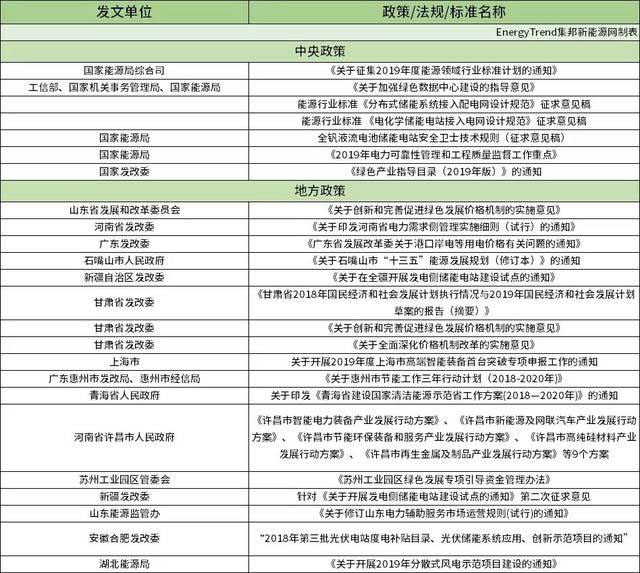 1月,國(guó)家能源局綜合司發(fā)布《關(guān)于征集2019年度能源領(lǐng)域行業(yè)標(biāo)準(zhǔn)計(jì)劃的通知》,該通知重點(diǎn)圍繞煤電油氣等常規(guī)能源、水能、風(fēng)能、太陽(yáng)能、生物質(zhì)能、地?zé)崮艿刃履茉醇翱稍偕茉础㈨?yè)巖氣、煤層氣(煤礦瓦斯)等非常規(guī)油氣及海洋油氣資源開(kāi)發(fā)、煤炭深加工及梯級(jí)利用、儲(chǔ)能技術(shù)、能源互聯(lián)網(wǎng)、電動(dòng)汽車(chē)充電設(shè)施、船舶岸電、分布式能源、高效節(jié)能、新型裝備、軍民融合、農(nóng)村能源等標(biāo)準(zhǔn)項(xiàng)目進(jìn)行申報(bào)。