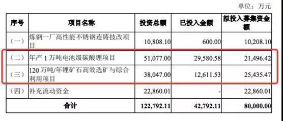 4月16日,永興特鋼(002756)公告顯示,公司擬發(fā)行不超過(guò)8億元可轉(zhuǎn)換公司債券,用于不銹鋼連鑄技改以及鋰電新能源業(yè)務(wù),其中,約4.7億元將投入電池級(jí)碳酸鋰項(xiàng)目以及鋰礦石選礦項(xiàng)目。