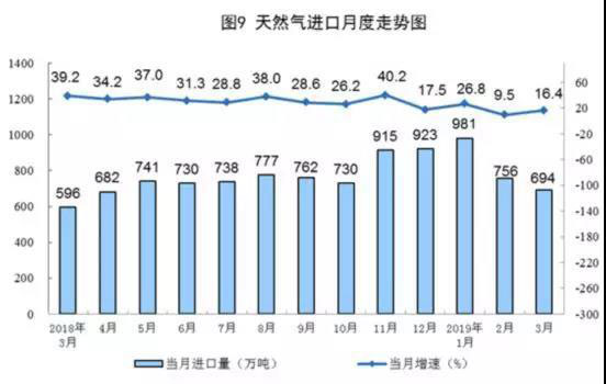 3月份,進(jìn)口天然氣694萬噸,同比增長16.4%。1季度,天然氣進(jìn)口量同比增長17.8%。