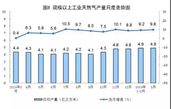 3月份,生產(chǎn)天然氣151億立方米,同比增長9.8%,增速比1—2月份加快0.6個百分點(diǎn);日均產(chǎn)量4.9億立方米,與1—2月份持平。1季度,生產(chǎn)天然氣440億立方米,同比增長9.4%,比去年同期加快6.1個百分點(diǎn)。
