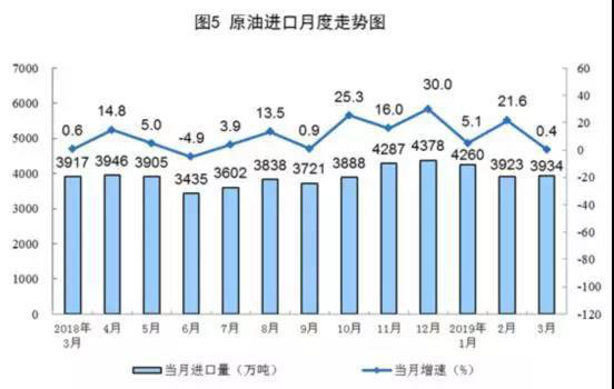 原油進(jìn)口略有增加。3月份,進(jìn)口原油3934萬噸,同比增長0.4%。1季度,原油進(jìn)口量同比增長8.2%。