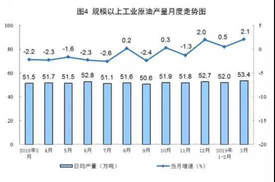 3月份,生產(chǎn)原油1654萬噸,同比增長2.1%,增速比1—2月份加快1.6個百分點(diǎn);日均產(chǎn)量53.4萬噸,比1—2月份日均增加1.4萬噸。1季度,生產(chǎn)原油4735萬噸,同比增長0.6%,去年同期下降2.0%,增速由負(fù)轉(zhuǎn)正。