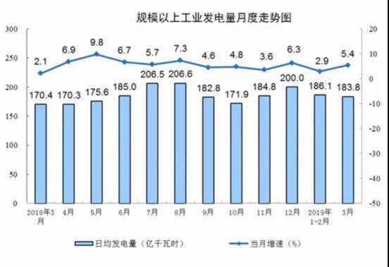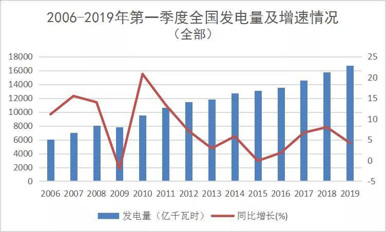3月份,全國發(fā)電量5697.9億千瓦時(shí),日均發(fā)電183.8億千瓦時(shí),同比增長5.4%,增速比1—2月份加快2.5個百分點(diǎn)。1季度,全國發(fā)電量達(dá)16747.4億千瓦時(shí),同比增長4.2%,增速比去年同期回落3.8個百分點(diǎn)。