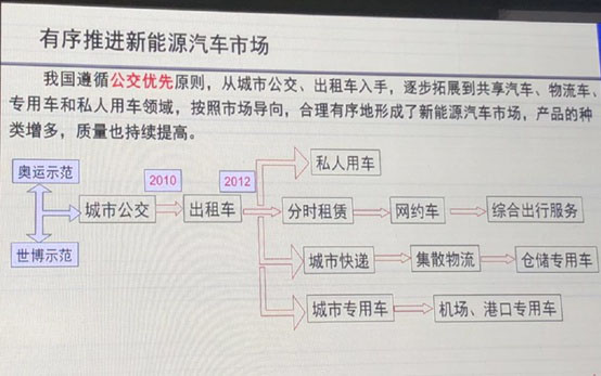 萬(wàn)鋼說(shuō),發(fā)展新能源汽車(chē)的初衷是為了節(jié)能減排,降低碳排放量,因此在未來(lái)要繼續(xù)堅(jiān)持這一發(fā)展戰(zhàn)略。從整個(gè)市場(chǎng)的布局上遵循公交優(yōu)先的原則,從公交車(chē)、出租車(chē)入手,逐步拓展到共享汽車(chē)、物流車(chē)、專(zhuān)用車(chē)和私人汽車(chē)領(lǐng)域,合理有序地形成新能源汽車(chē)市場(chǎng)。