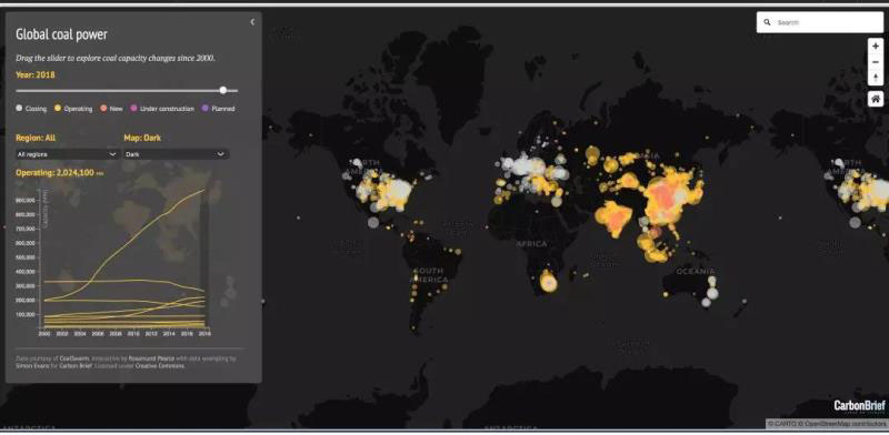 根據(jù)CarbonBrief匯總的數(shù)據(jù),自2000年以來,由于中國和印度的爆發(fā)性增長,全球燃煤發(fā)電裝機(jī)翻了一番,2018年在運機(jī)組裝機(jī)達(dá)到2024吉瓦千兆瓦(GW);此外還有236吉瓦在建、306吉瓦計劃中的煤電機(jī)組,186吉瓦在2030年以前退役。