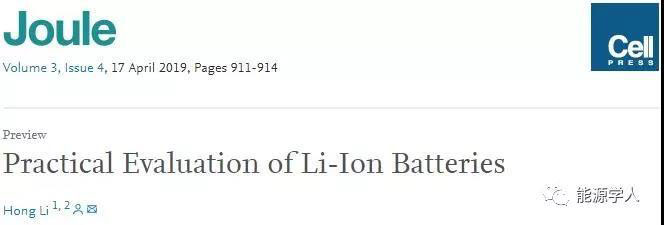 Hong Li, Practical Evaluation of Li-Ion Batteries. Joule. 2019, 3, 911–914, DOI: 10.1016/j.joule.2019.03.028