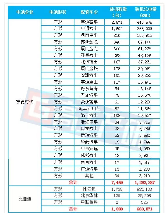 2019Q1磷酸鐵鋰動力電池裝機(jī)總電量TOP10企業(yè)