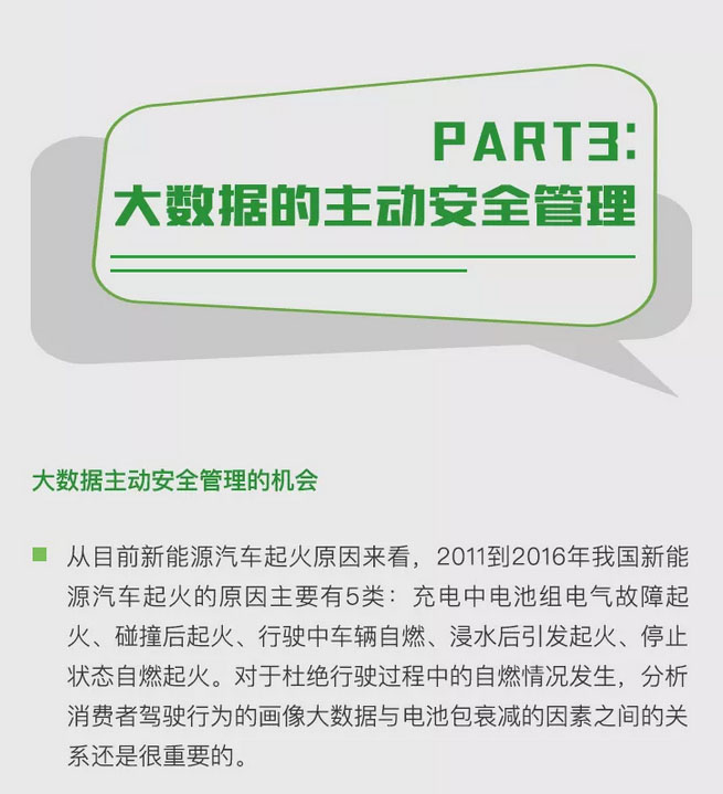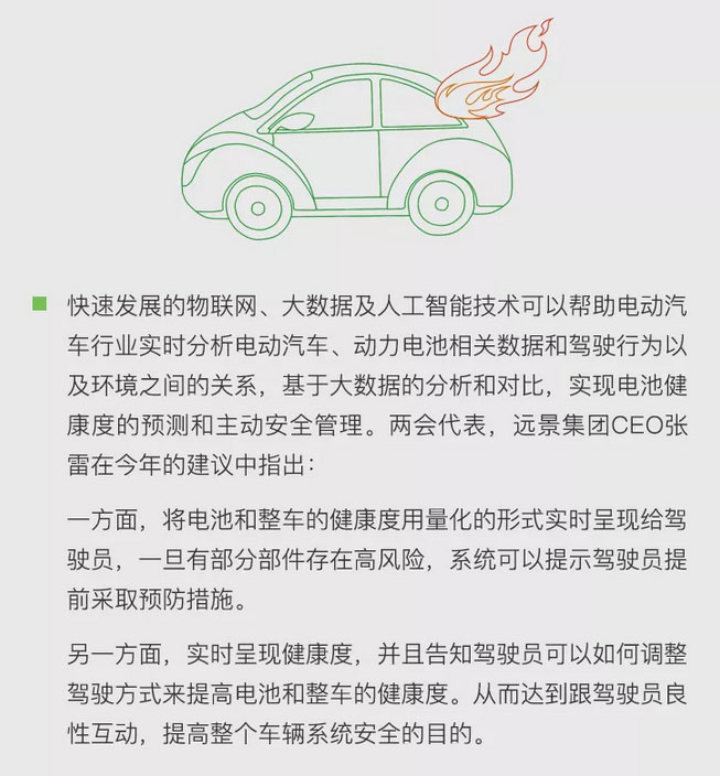 新能源汽車的安全是行業(yè)發(fā)展的“阿喀琉斯之踵”,尤其是動(dòng)力電池安全。近幾年的新能源汽車事故,大多與電池品質(zhì)有關(guān)。一方面,行業(yè)標(biāo)準(zhǔn)及國家強(qiáng)制標(biāo)準(zhǔn)體系的完善將有助于解決這個(gè)問題,另一方面,電池全生命周期的非線性拐點(diǎn)的預(yù)測(cè)等大數(shù)據(jù)主動(dòng)安全管理技術(shù)的提升,將對(duì)電動(dòng)汽車的本質(zhì)安全產(chǎn)生積極影響。