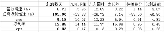 相比其他智慧能源與生態(tài)環(huán)保企業(yè),東旭藍(lán)天在2018年顯示了強(qiáng)勁的成長性。數(shù)據(jù)顯示,東江環(huán)保、東方園林、太陽能、棕櫚股份、億利潔能在2018年分別實現(xiàn)ROE10.57%、13.28%、6.94%、0.91%及4.81%。而東旭藍(lán)天則以9.18%的ROE在同行中占據(jù)較大優(yōu)勢。同時,東旭藍(lán)天在報告期實現(xiàn)歸母凈利增速105.43%,也遠(yuǎn)超上述同行-13.83%、-26.72%、7.14%、-83.5%和46.8%的水平。