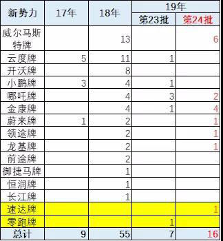 本期的新勢(shì)力造車企業(yè)的產(chǎn)品不多,2019年第24批的新能源乘用車,主要目標(biāo)是高續(xù)航的實(shí)現(xiàn),300公里的屬于主流,因此400公里以上的較多,產(chǎn)品表現(xiàn)較好。