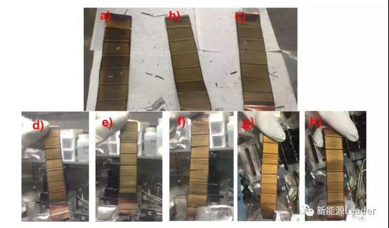 下圖為循環(huán)一定次數(shù)后的電池解剖后的負極照片,從圖中能夠看到盡管有的電池在壽命末期發(fā)生了明顯的容量跳水,但是負極并沒有觀察到大良的析鋰現(xiàn)象,這也表明上面我們觀察到的容量跳水現(xiàn)象并非是由于負極析鋰導致的。