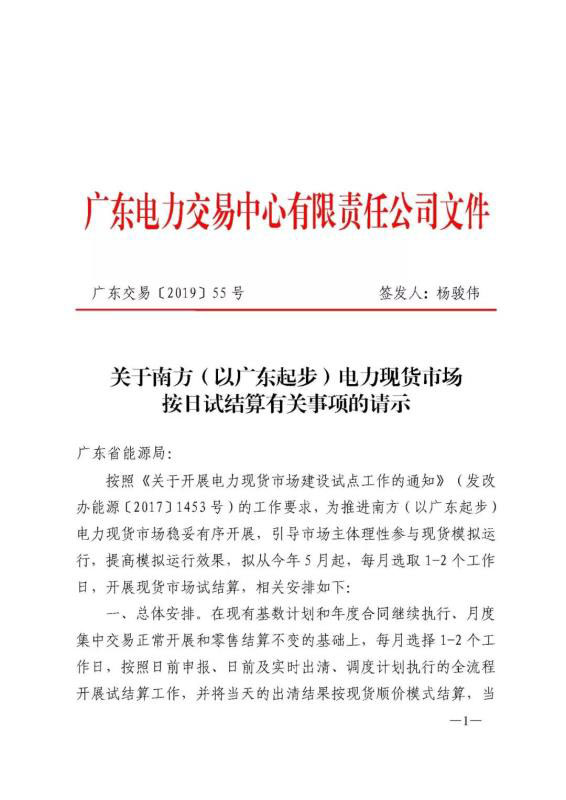 近日廣東省電力中心為了推進(jìn)南方電力現(xiàn)貨市場穩(wěn)妥有序開展,引導(dǎo)市場主體理性參與現(xiàn)貨模擬運行,同時提高模擬運行效果。特向廣東省能源局提出《關(guān)于南方(以廣東起步)電力現(xiàn)貨市場按日試結(jié)算有關(guān)事項的請示》(以下簡稱《請示》):擬從今年 5 月起,每月選取 1-2 個工作日,開展現(xiàn)貨市場試結(jié)算。