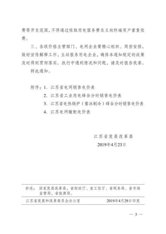 附江蘇發(fā)改委下調電價文件: