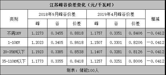 “儲能100人”發(fā)現,在一般工商業(yè)電價下調的情況下,其峰價和谷價也發(fā)生改變。經過測算,峰谷價差縮小了0.0412元/KWh,幅度超過此番電價下調的0.031元/KWh。據業(yè)內人士反映,當前江蘇用戶側儲能一些項目的盈利情況,也就是每度電幾分錢上下。
