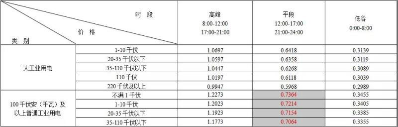 2018年9月1日起執(zhí)行的工業(yè)用電峰谷分時電價表。單位:元/KWh